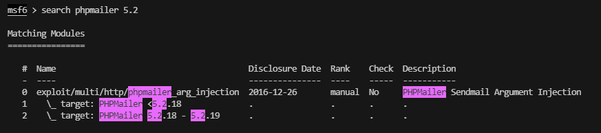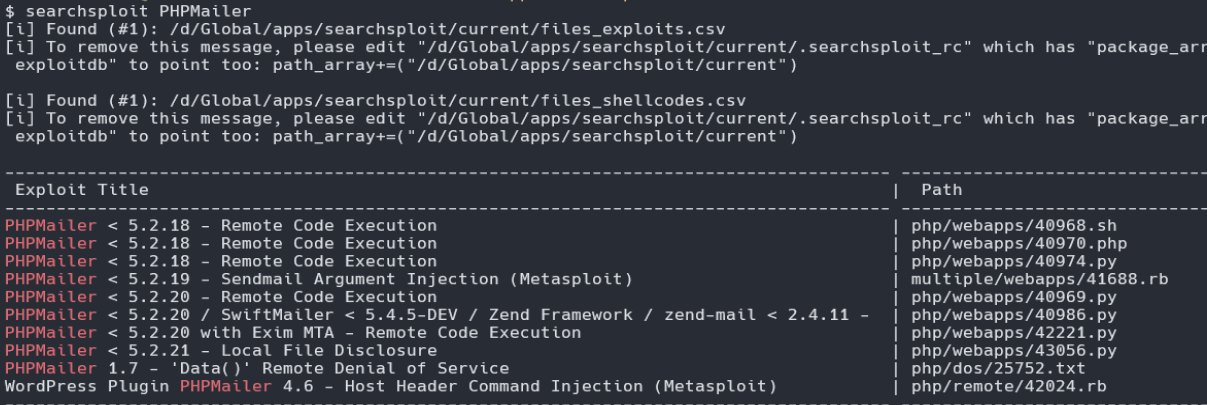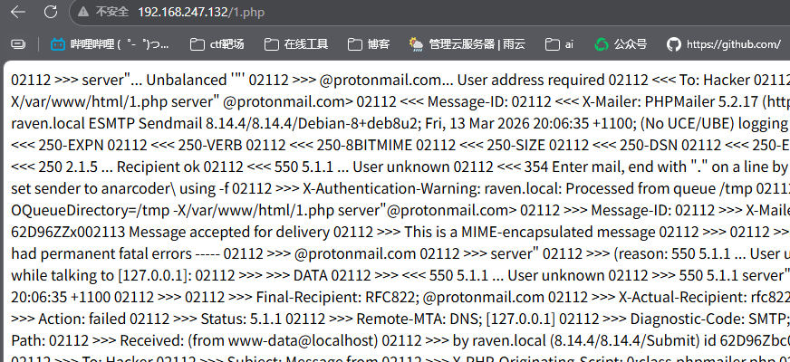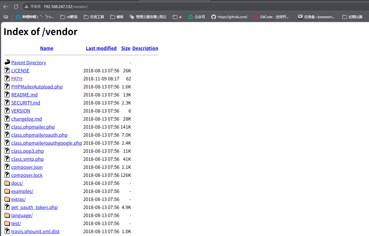 接着在/vendor目录下的README.md中找到phpmailer以及VERSION中的版本号,猜测存在相应的漏洞,使用工具测试一下