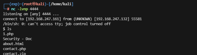 这里要稍作修改,具体如上图所示,然后执行该脚本,开启监听,让后去访问http://192.168.247.132/1.php触发反弹shell。接着再使用python命令获取完整的shell。执行该命令后,获得与直接在服务器上登录相同的体验。如果不执行该命令,后续mysql登录不进去