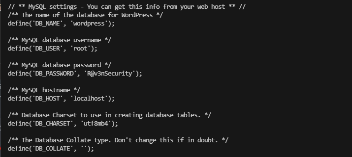 在wordpress目录下查看wp-config.php文件发现数据库用户名和密码