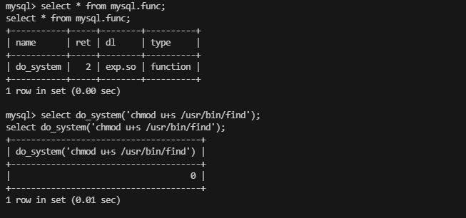 create function do_system returns integer soname 'exp.so';#自定义函数do_sysytem